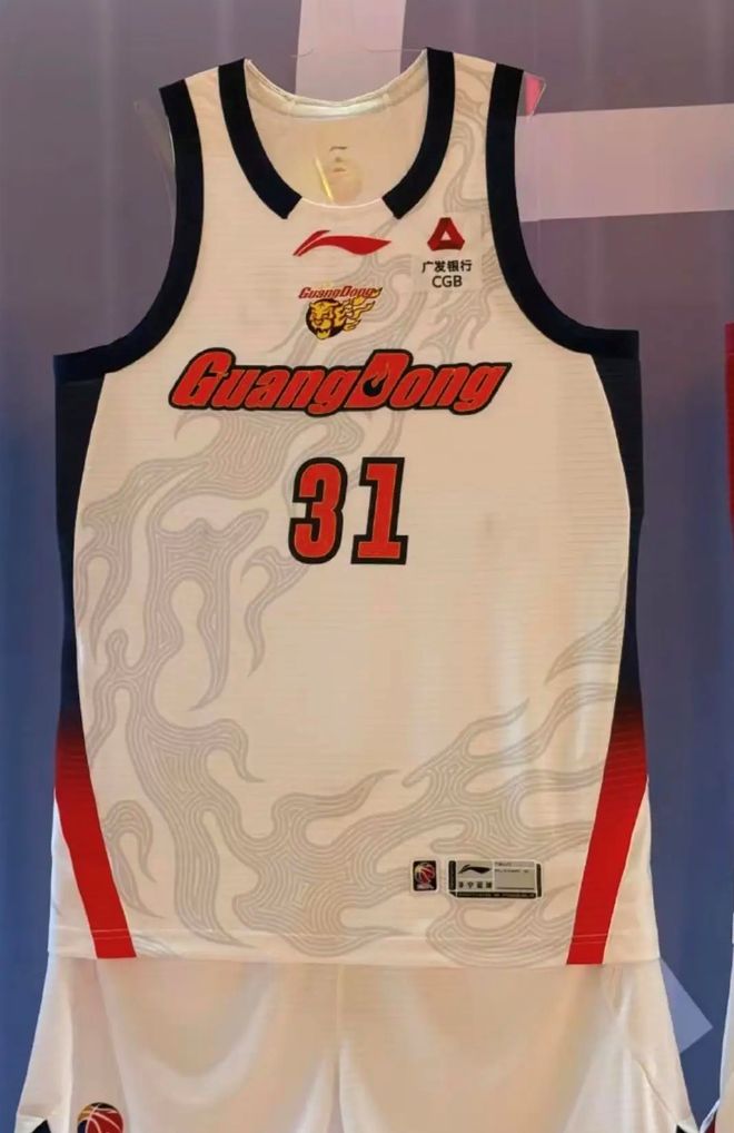 宏远这几年的主场球衣非常单调,样式基本没有太大的调整,球迷们都直呼没有设计感。今年宏远主场球衣正式上新,可以看出今年的球衣走了复古风,有点像朱八王七时期广东的球衣。依然是白色主调,背景是华南虎的虎纹图案。中间橘红色字体十分显眼,球衣侧边也有花纹装饰,整体十分大气亮眼。不过也有球迷调侃,乍一看有点像篮球火里面的球衣。