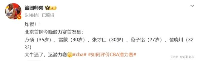 CBA新赛季最荒唐一幕!北京队损招坑惨篮协:潜力赛秒变老年赛?
