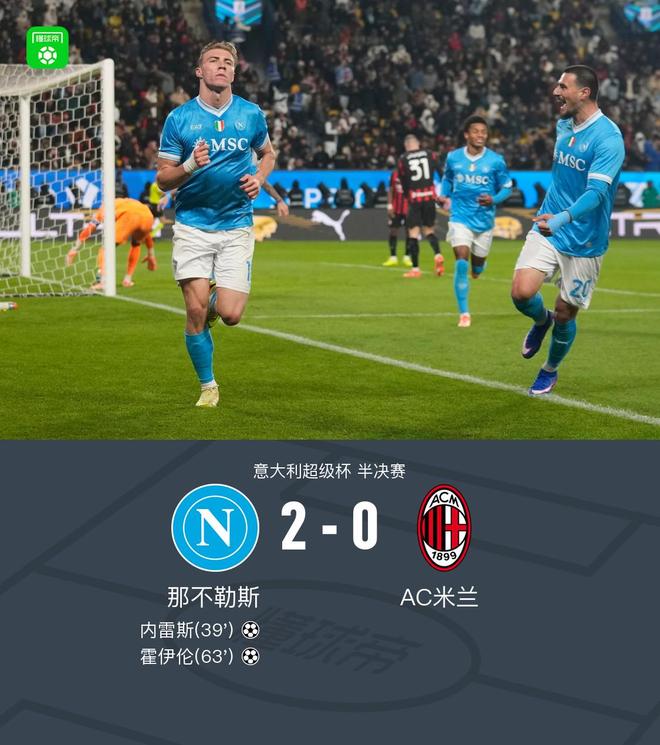 那不勒斯2-0米兰晋级决赛,内雷斯破门,霍伊伦建功