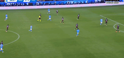 第39分钟,霍伊伦横传,迈尼昂脱手,内雷斯补射破门,那不勒斯1-0领先